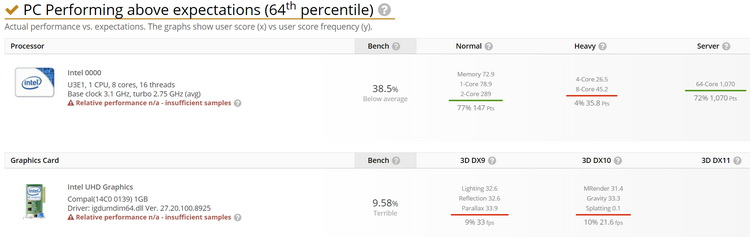 Следует отметить, что платформа Userbenchmark использует весьма противоречивые и предвзятые методы сравнения процессоров Intel и AMD, поэтому верить отображаемым результатам тестов производительности не стоит. Какие-то первые выводы можно будет делать после того, как процессоры Tiger Lake-H будут протестированы с участием более авторитетных бенчмарков.